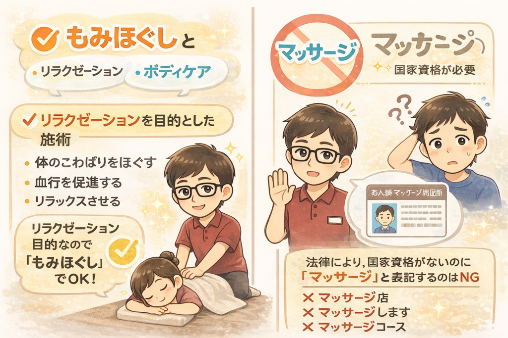 「マッサージ店と、もみほぐし店って、何が違うの?」